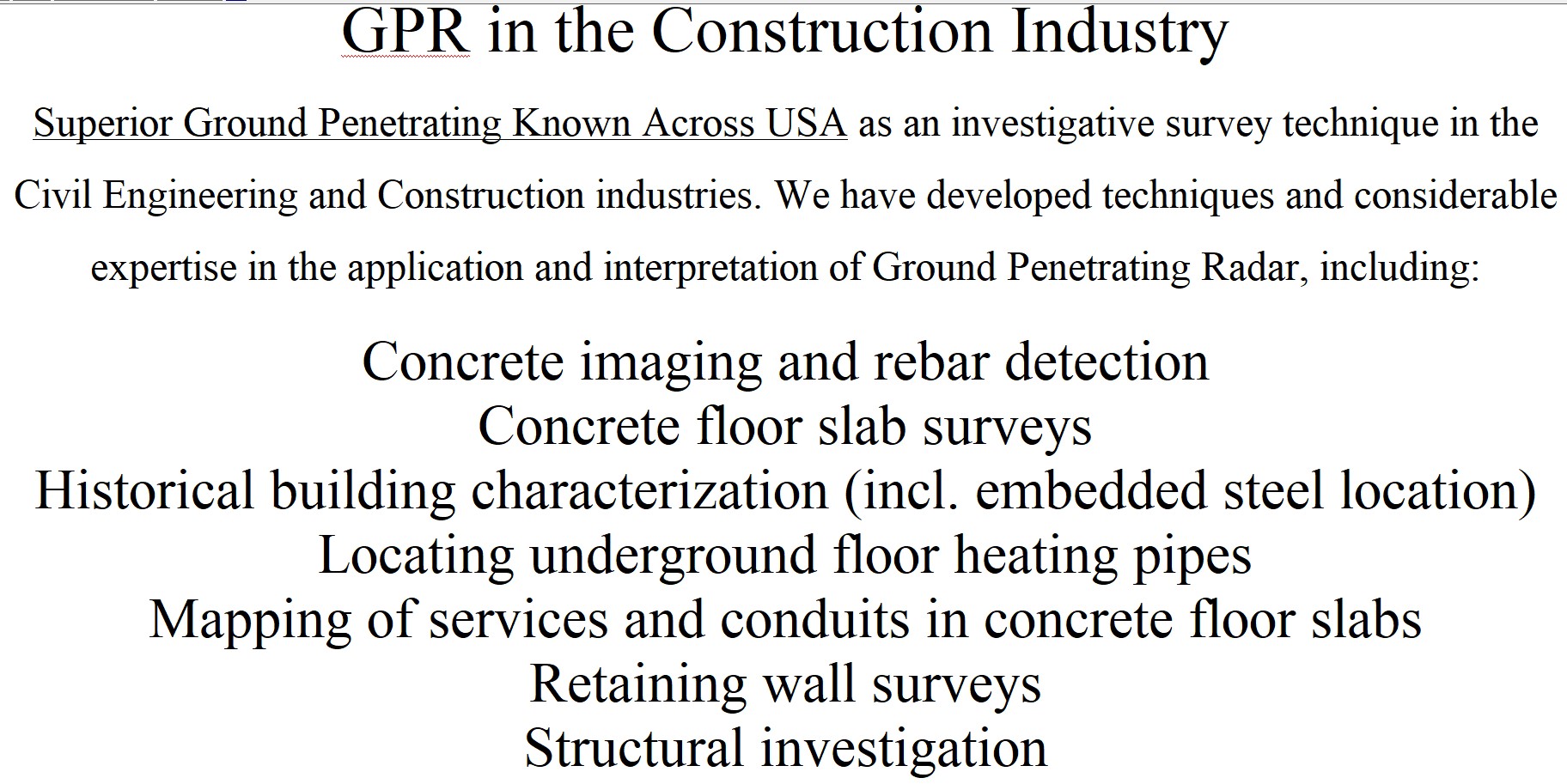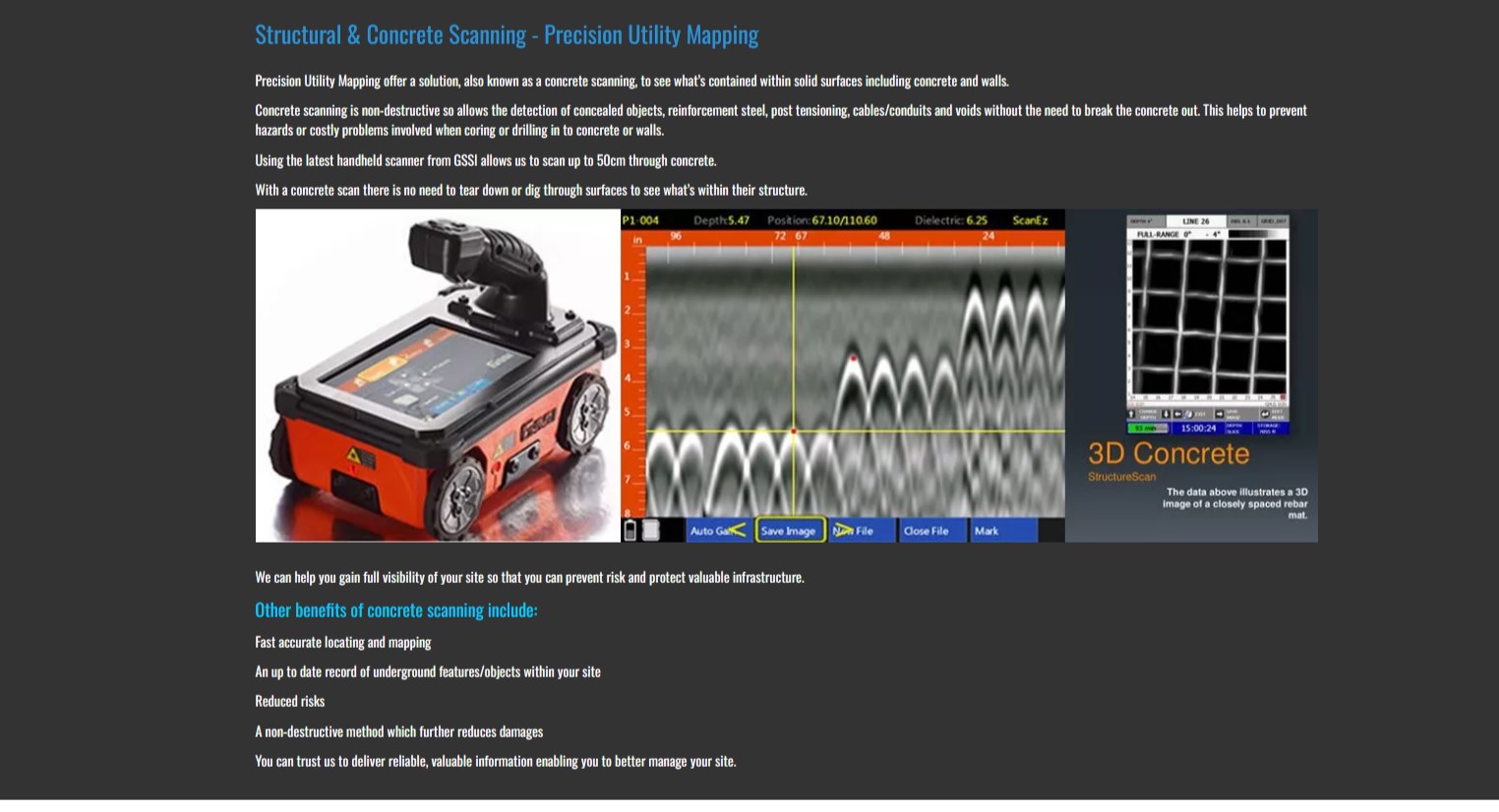 Concrete X-Ray Scanning - Low Prices & Same Day Services GPRervices California's Top Rated Concrete Scanning Services. Years Of Experience. Lowest Prices. Expert Technicians. Fast Response Times. Contact Our Team. Get Your Free Estimate Today. Serving All Of California. 8941 Atlanta Avenue #518, Huntington Beach, California - Open today · Open 24 hours Sponsored 3D Laser Scanning Services - 3D Scanning Services Near You Spatial AcuityWe can anticipate your needs & deliver your as built project with unparalleled service. . Sponsored GPR Detection Services | Clear Scan Radar Imaging business. clear-scan We Locate and Map what's hidden in Concrete so you can Avoid costly mistakes. Call Us... Sponsored GPR Concrete Scanning | Ground Penetrating Radar Scans GPR scans reveal what is within or below the surface through a nondestructive process. Digital Concrete Scanning Digital Concrete Scanning Founded in , Digital Concrete are experts in Ground Penetrating Radar (GPR) scanning services, utility locating and x-ray services across the West Coast. We ... Contact · Services · Concrete Scanning Services Ground Penetrating Radar Systems services concrete-scanning Our job is to detect and mark sections of reinforcing steel and other subsurface anomalies in the concrete to help you and your team avoid injury as you cut, ... People also ask What does a concrete scanner do? How do you locate through concrete? Does GPR pick up concrete? Is there a way to detect rebar in concrete? Feedback Anaheim Concrete Scanning 92260 Palm Desert 92261 Palm Desert 92262 Palm Springs 92263 Palm Springs 92264 Palm Springs 92266 Palo Verde 92267 Parker Dam 92268 Pioneertown 92270 Rancho Mirage 92273 Seeley 92274 Thermal 92275 Salton City 92276 Thousand Palms 92277 Twentynine Palms 92278 Twentynine Palms 92280 Vidal 92281 Westmorland 92282 White Water 92283 Winterhaven 92284 Yucca Valley 92285 Landers 92286 Yucca Valley 92292 Palm Springs 92301 Adelanto 92304 Amboy 92305 Angelus Oaks 92307 Apple Valley 92308 Apple Valley 92309 Baker 92310 Fort Irwin 92311 Barstow 92312 Barstow 92313 Grand Terrace 92314 Big Bear City 92315 Big Bear Lake 92316 Bloomington 92317 Blue Jay 92318 Bryn Mawr 92320 Calimesa 92321 Cedar Glen 92322 Cedarpines Park 92323 Cima 92324 Colton 92325 Crestline 92326 Crest Park 92327 Daggett 92328 Death Valley 92329 Phelan 92331 Fontana 92332 Essex 92333 Fawnskin 92334 Fontana 92335 Fontana 92336 Fontana 92337 Fontana 92338 Ludlow 92339 Forest Falls 92340 Hesperia 92341 Green Valley Lake 92342 Helendale 92344 Hesperia 92345 Hesperia 92346 Highland 92347 Hinkley 92350 Loma Linda 92352 Lake Arrowhead 92354 Loma Linda 92356 Lucerne Valley 92357 Loma Linda 92358 Lytle Creek 92359 Mentone 92363 Needles 92364 Nipton 92365 Newberry Springs 92366 Mountain Pass 92368 Oro Grande 92369 Patton 92371 Phelan 92372 Pinon Hills 92373 Redlands 92374 Redlands 92375 Redlands 92376 Rialto 92377 Rialto 92378 Rimforest 92382 Running Springs 92384 Shoshone 92385 Skyforest 92386 Sugarloaf 92389 Tecopa 92391 Twin Peaks 92392 Victorville 92393 Victorville 92394 Victorville 92395 Victorville 92397 Wrightwood 92398 Yermo 92399 Yucaipa 92401 San Bernardino 92402 San Bernardino 92403 San Bernardino 92404 San Bernardino 92405 San Bernardino 92406 San Bernardino 92407 San Bernardino 92408 San Bernardino 92410 San Bernardino 92411 San Bernardino 92412 San Bernardino 92413 San Bernardino 92414 San Bernardino 92415 San Bernardino 92418 San Bernardino 92423 San Bernardino 92424 San Bernardino 92427 San Bernardino 92501 Riverside 92502 Riverside 92503 Riverside 92504 Riverside 92505 Riverside 92506 Riverside 92507 Riverside 92508 Riverside 92509 Riverside 92513 Riverside 92514 Riverside 92515 Riverside 92516 Riverside 92517 Riverside 92518 March Air Reserve Base 92519 Riverside 92521 Riverside 92522 Riverside 92530 Lake Elsinore 92531 Lake Elsinore 92532 Lake Elsinore 92536 Aguanga 92539 Anza 92543 Hemet 92544 Hemet 92545 Hemet 92546 Hemet 92548 Homeland 92549 Idyllwild 92551 Moreno Valley 92552 Moreno Valley 92553 Moreno Valley 92554 Moreno Valley 92555 Moreno Valley 92556 Moreno Valley 92557 Moreno Valley 92561 Mountain Center 92562 Murrieta 92563 Murrieta 92564 Murrieta 92567 Nuevo 92570 Perris 92571 Perris 92572 Perris 92581 San Jacinto 92582 San Jacinto 92583 San Jacinto 92584 Menifee 92585 Sun City 92586 Sun City 92587 Sun City 92589 Temecula 92590 Temecula 92591 Temecula 92592 Temecula 92593 Temecula 92595 Wildomar 92596 Winchester 92599 Perris 92602 Irvine 92603 Irvine 92604 Irvine 92605 Huntington Beach 92606 Irvine 92607 Laguna Niguel 92609 El Toro 92610 Foothill Ranch 92612 Irvine 92614 Irvine 92615 Huntington Beach 92616 Irvine 92617 Irvine 92618 Irvine 92619 Irvine 92620 Irvine 92623 Irvine 92624 Capistrano Beach 92625 Corona Del Mar 92626 Costa Mesa 92627 Costa Mesa 92628 Costa Mesa 92629 Dana Point 92630 Lake Forest 92637 Laguna Woods 92646 Huntington Beach 92647 Huntington Beach 92648 Huntington Beach 92649 Huntington Beach 92650 East Irvine 92651 Laguna Beach 92652 Laguna Beach 92653 Laguna Hills 92654 Laguna Hills 92655 Midway City 92656 Aliso Viejo 92657 Newport Coast 92658 Newport Beach 92659 Newport Beach 92660 Newport Beach 92661 Newport Beach 92662 Newport Beach 92663 Newport Beach 92672 San Clemente 92673 San Clemente 92674 San Clemente 92675 San Juan Capistrano 92676 Silverado 92677 Laguna Niguel 92678 Trabuco Canyon 92679 Trabuco Canyon 92683 Westminster 92684 Westminster 92685 Westminster 92688 Rancho Santa Margarita 92690 Mission Viejo 92691 Mission Viejo 92692 Mission Viejo 92693 San Juan Capistrano 92694 Ladera Ranch 92697 Irvine 92698 Aliso Viejo 92701 Santa Ana 92702 Santa Ana 92703 Santa Ana 92704 Santa Ana 92705 Santa Ana 92706 Santa Ana 92707 Santa Ana 92708 Fountain Valley 92709 Irvine 92710 Irvine 92711 Santa Ana 92712 Santa Ana 92725 Santa Ana 92728 Fountain Valley 92735 Santa Ana 92780 Tustin 92781 Tustin 92782 Tustin 92799 Santa Ana 92801 Anaheim 92802 Anaheim 92803 Anaheim 92804 Anaheim 92805 Anaheim